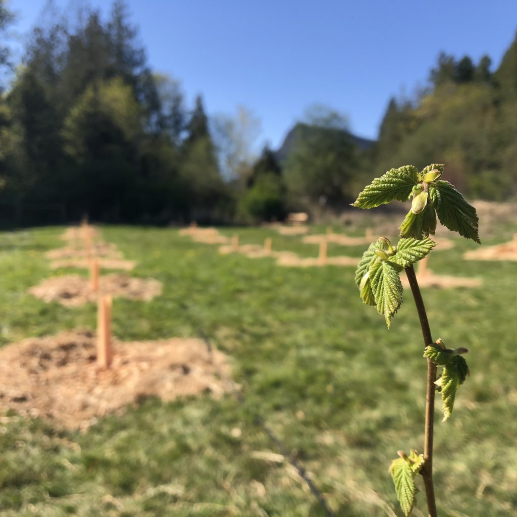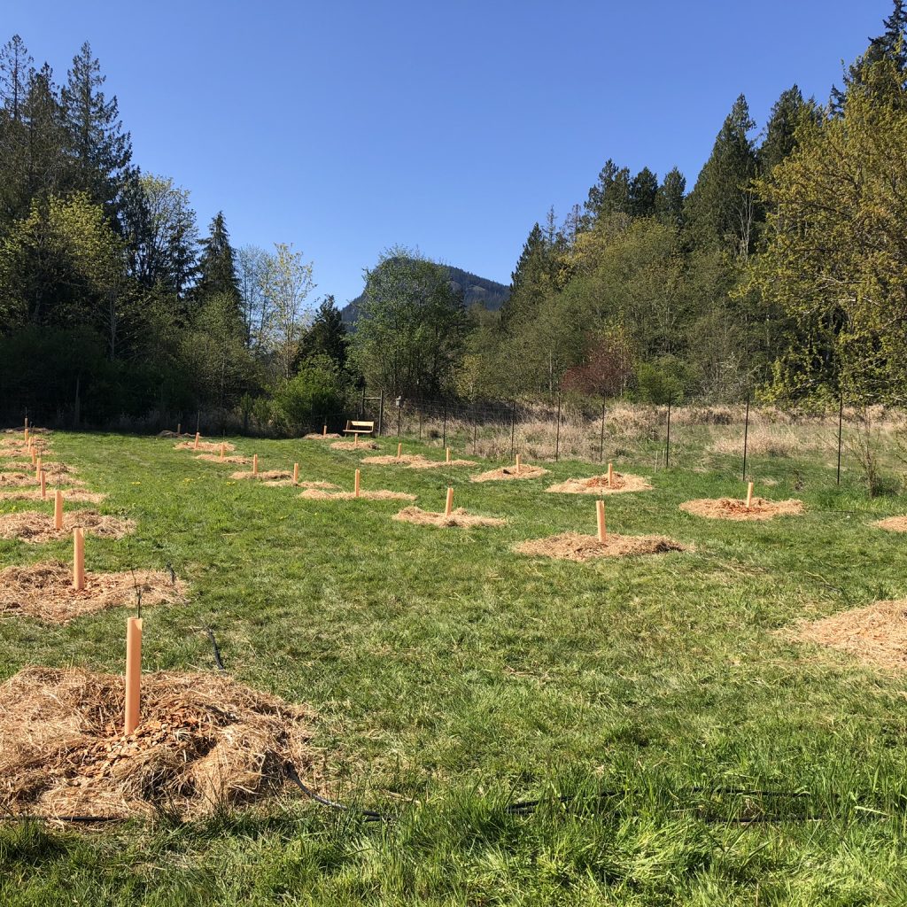 This Hazelnut Orchard was installed in 2025 in Burgoyne Valley, Salt Spring Island. You can see Mt Maxwell in the background. This Hazelnut Orchard had four rows of 9 Trees for a total of 36 Trees. 20ft x 20ft spacing on the Trees. We included Tree shelters for protection and and a drip irrigation system for ease of watering. The trees were from Nature Tech Nursery and are the improved Eastern Filbert Blight resistant varieties from Oregon State University. Organic Fertilizer and Ammendments, Mycorrhizae innoculant, and local compost & mulch. Interested in an orchard installation for your Salt Spring Island Property? Contact us here.