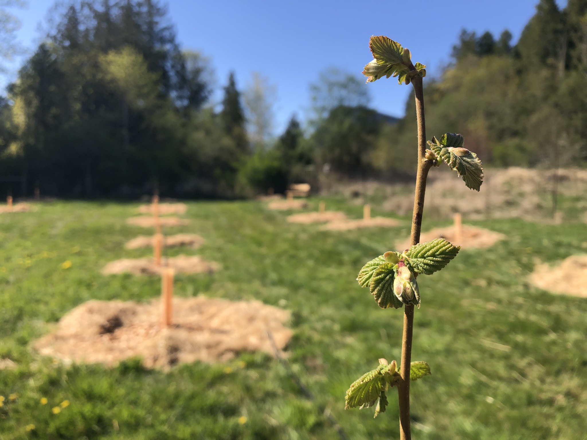 This Hazelnut Orchard was installed in 2025 in Burgoyne Valley, Salt Spring Island. You can see Mt Maxwell in the background. This Hazelnut Orchard had four rows of 9 Trees for a total of 36 Trees. 20ft x 20ft spacing on the Trees. We included Tree shelters for protection and and a drip irrigation system for ease of watering. The trees were from Nature Tech Nursery and are the improved Eastern Filbert Blight resistant varieties from Oregon State University. Organic Fertilizer and Ammendments, Mycorrhizae innoculant, and local compost & mulch. Interested in an orchard installation for your Salt Spring Island Property? Contact us here.