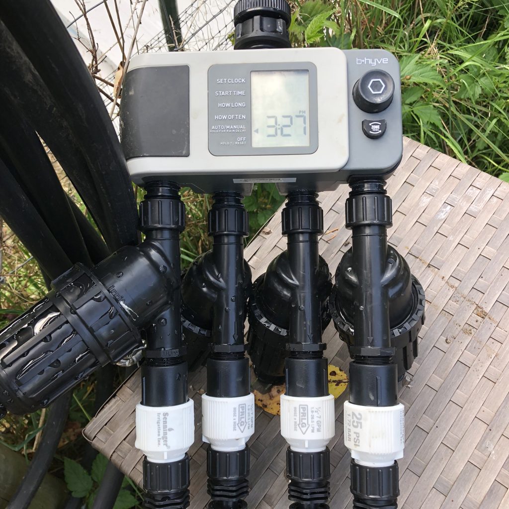 - 4-Zone B-Hyve Smart Irrigation Timer: WiFi and Bluetooth-enabled controller for automated, customizable watering schedules across multiple zones, with app-based remote control.